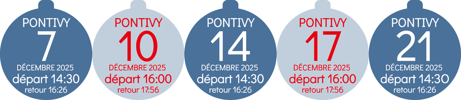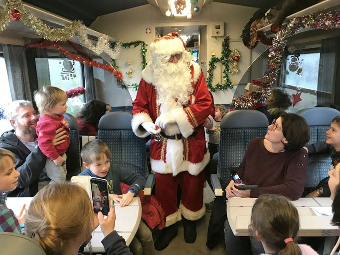 Les Trains du Père Noël de l’association des Chemins de Fer du Centre Bretagne sont devenus des incontournables des fêtes de fin d’année. Les enfants avec leur famille embarquent à leur bord, dans l’espoir de croiser le Père Noël. Comme chaque année, ce dernier réserve ses après-midis pour être sûr de ne pas rater ces trains si particuliers. À bord il enchantera petits et grands et distribuera ses cadeaux à tous dans l’ambiance magique de Noël. Les trajets de deux heures vous permettent de passer un bon moment en famille confortablement installé.